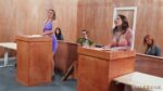 Chantal Danielle and Natallia Starr stand in a courtroom before the judge. Chantal Danielle, covered in tattoos, strips and joins Natallia S…