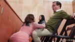 Chantal Danielle and Natallia Starr stand in a courtroom before the judge. Chantal Danielle, covered in tattoos, strips and joins Natallia Starr on her knees to give a sloppy double blowjob. The women lick each other’s faces while sucking his hard dick. Chantal Danielle bends over the desk in her pink top and purple skirt, spreads her big ass and gets pounded hard from behind, her large breasts swinging. She then straddles the judge reverse cowgirl style, riding his thick cock while holding her tits. Chantal Danielle finishes on her knees, stroking his shaft and taking a massive cum shot straight into her open mouth, letting it drip down her chin as she swallows.